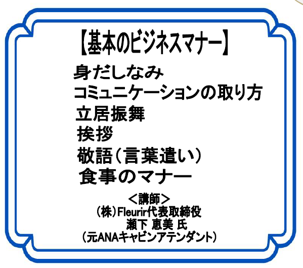 区民講座 社会人として知っておきたい基本のマナーを身に着けよう!~自信を持って行動できる自分になるために~ |