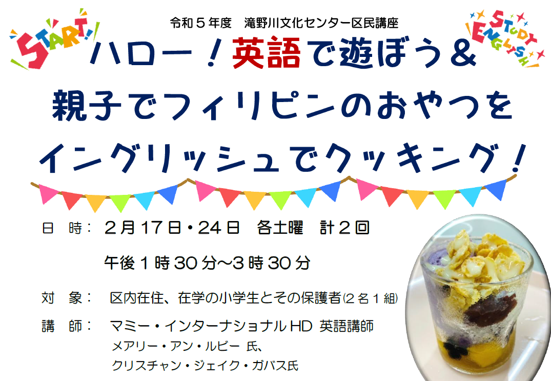 区民講座 ハロー!英語で遊ぼう&親子でフィリピンのおやつをイングリッシュでクッキング |