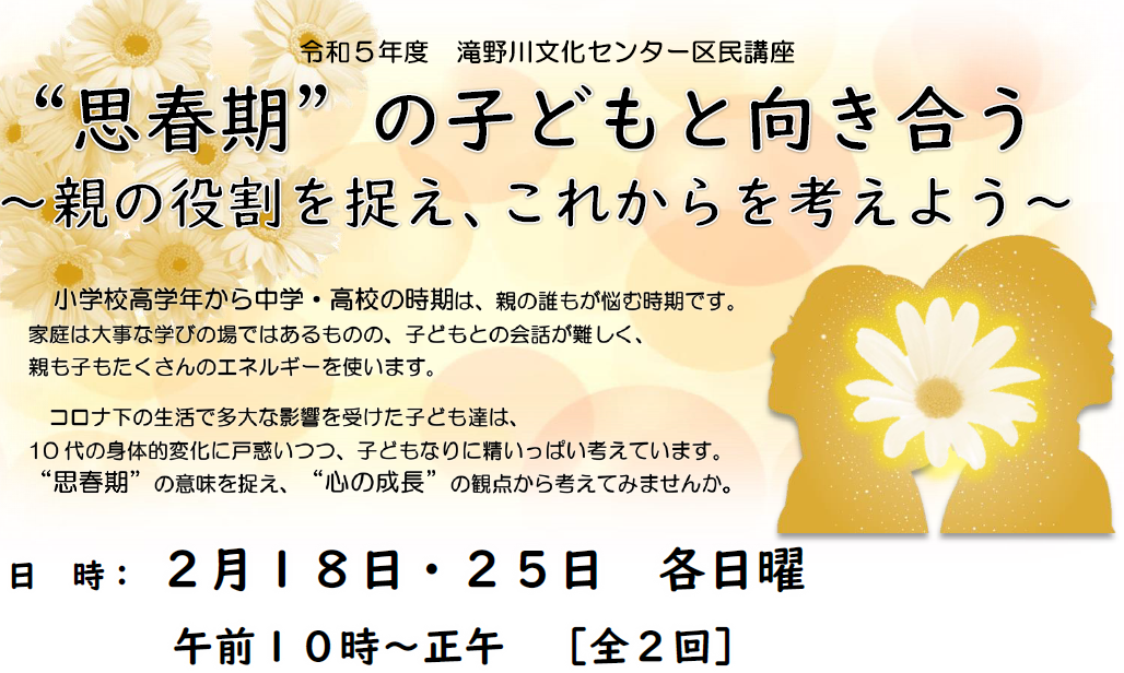 “思春期”の子どもと向き合う~親の役割を捉え、これからを考えよう~(保育あり) |