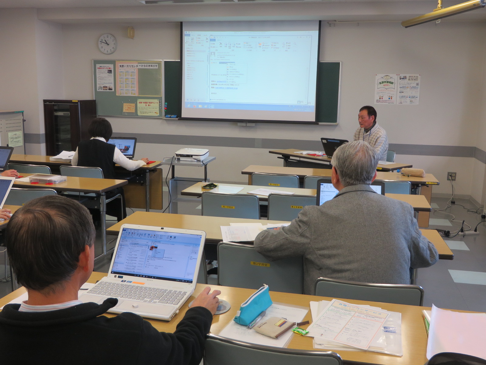 | パソコンをもっと使いこなそう! 二人の先生の指導のもとで、WordやExcelはもちろん、Windows、インターネット、写真集等のパソコンの機能をもっと有効利用して楽しみを増やしましょう。 困ったな? どうしよう? を解決して、楽しみましょう。 仲間を募集中です。ぜひ見学に来てください。お待ちしています。 |